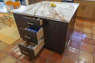 Embrace sustainability and reduce kitchen waste with a discreet, built-in composting bin. This design allows you to easily scrape food scraps directly into a hidden bin integrated into the island, keeping your workspace tidy and promoting eco-friendly habits in your Phoenix home.