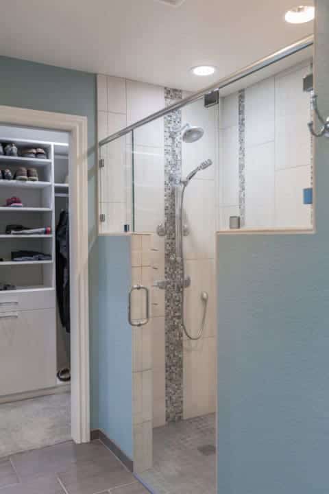 The primary bathroom was reconfigured to improve both function and accessibility.