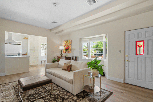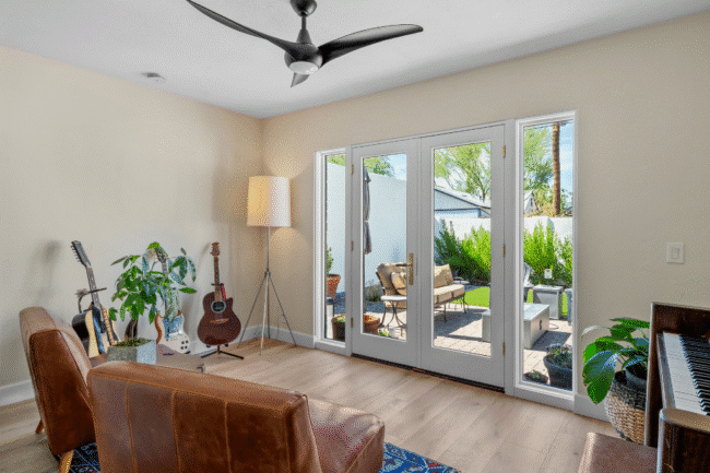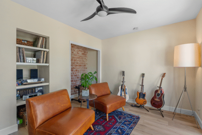 - A third bedroom converted into a music room with French doors to the backyard