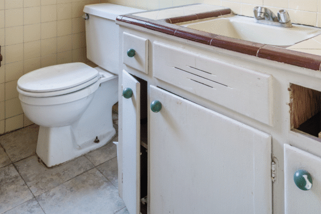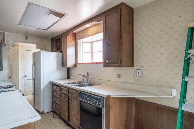 It was deteriorated, full stop. We trenched around the entire home and replaced all the underground lines, pitching them correctly for the bathrooms, laundry room, and kitchen. The kitchen sink relocation required running new pipe through an interior wall, out the side of the house, under a step, and tying into the backyard connection. Not budget-friendly, but absolutely worth it.