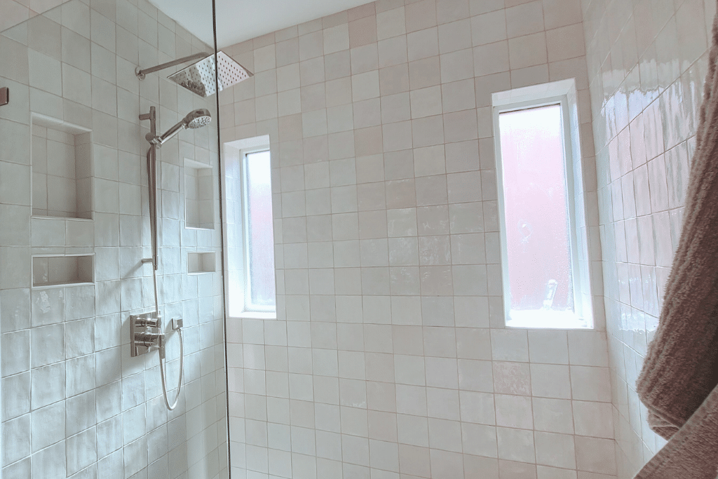 The new bathroom features a curbless shower, improved circulation, and a layout that supports accessibility without sacrificing design. A double vanity, dedicated storage, and thoughtful lighting enhance daily use.