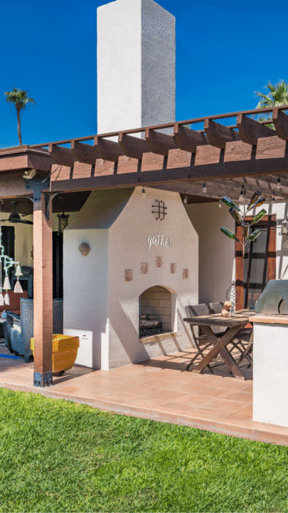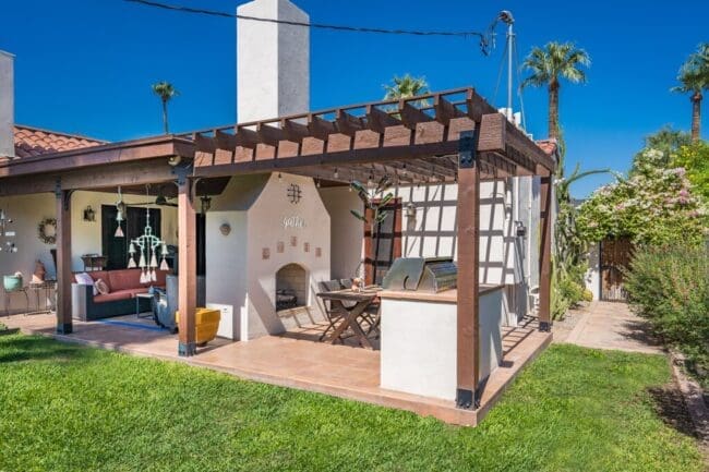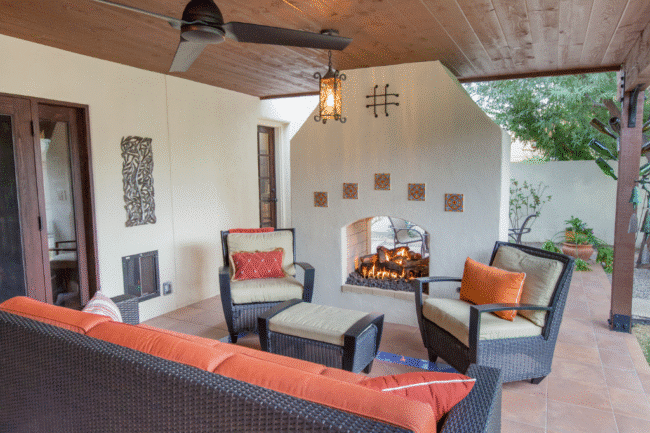 Key Features: Stucco restoration, historically appropriate paint palette, new covered patio, indoor-outdoor connection, porcelain tile patio flooring, preserved Spanish Colonial architectural elements