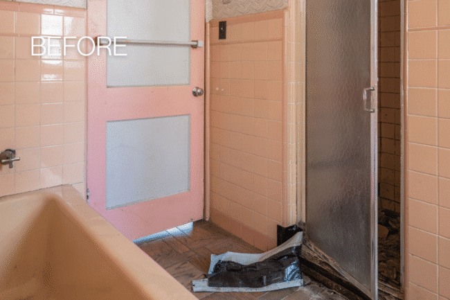 The original bathroom had accumulated decades of compromises. Pink tile from another era. A leaking shower that had long since stopped earning its place. A tub that ate up floor space without justifying it. An HVAC system that had been added after the fact, with ductwork crammed underground where nobody could easily reach it. A water closet with a furred-out wall eating into the clearance. Two doorways that interrupted what should have been a natural, flowing sequence between the closet, the vanity, and the shower.